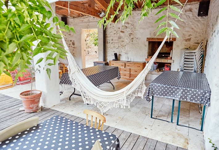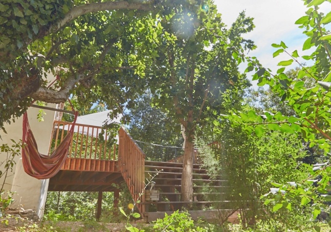 The wooden terrace is a convivial meeting place with the tenants of the second apartment and the owners.