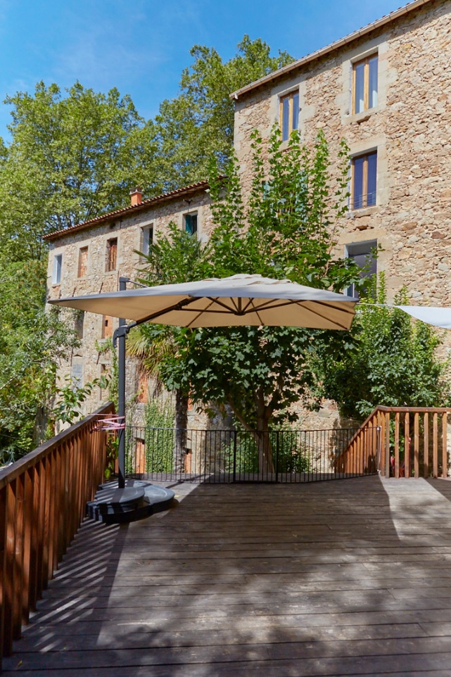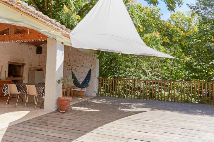There is access to the stone terrace. A barrier is provided at the end of the wooden deck, so that children can go back to their parents at the barbecue meal!