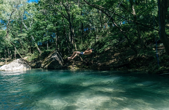 The “Blue Lagoon” is where you can swim and jump in the deep turquoise blue waters among the rocks. Depending on the movements of the river in winter, a beach of small pebbles is formed in the middle of the river to allow you a soothing nap!